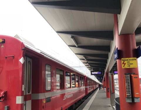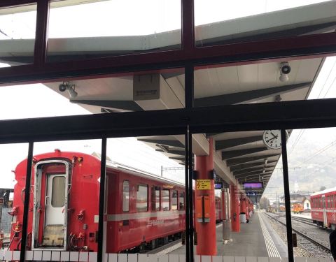 我们从圣莫里茨乘坐阿尔布拉—伯尔尼纳快车到意大利边境小城蒂拉诺(前往fox town购物村)。火车沿途穿越55座隧道,跨越196座桥梁,行程145公里,从阿尔卑斯山麓来到南国湖畔, 沿途欣赏美丽景色。