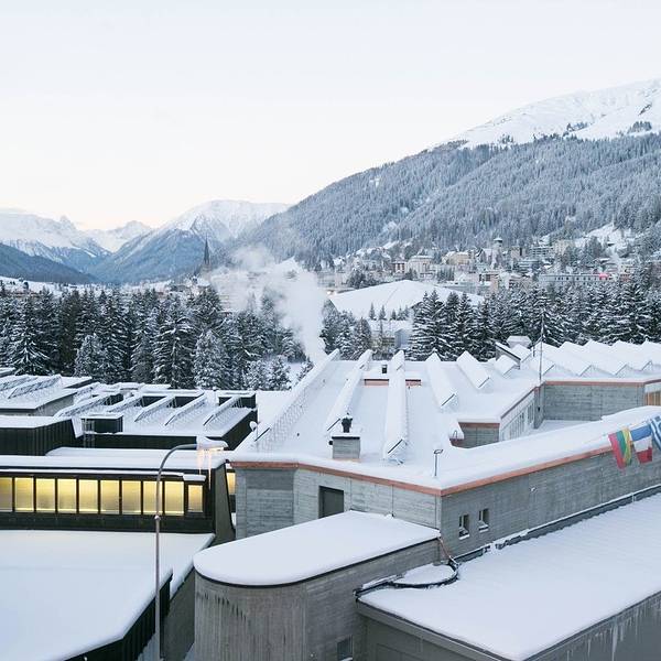 达沃斯 出名的有每年一月的世界经济论坛。我们到的时候论坛还未开始,正在紧锣密鼓的筹备着。 达沃斯 有一座山名字很气派,叫众魔之山,海拔1560米。在山上有着海拔最高的疗养度假村。海拔高,空气里的负离子就多,于是这里有着 阿尔卑斯山 中最洁净的空气。在20世纪初让这里出名的就是呼吸系统 疾病的治疗所了。说一个小插曲,奥黛丽赫本最初来 瑞士 就是为了肺部疾病的疗养,在小住之后她爱上了这个国家,于是在 莫尔日 度过了人生最后的岁月。 德国 作家托马斯·曼曾在这里得到灵感,写了脍炙人口的小说《魔山》。2015年在 阿尔卑斯山 脉还拍了电影《年轻气盛 》,有兴趣的话可以看一看,感受一下这里休闲度假的气氛。当然电影里拍的是夏天了。夏天人们来这里疗养,徒步。冬天我们来这里当然是滑雪了!世界经济论坛的主楼,在 达沃斯 市的主道上,如果不是有各国国旗作为标志,真的很难发现。