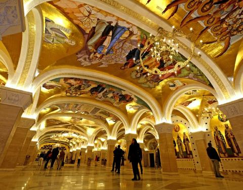 十分震撼,建筑十分的大气,漂亮,但是几十年到现在还是在装修中,地下室的壁画,简直让人惊叹,只能用金碧辉煌来形容,绝对不容错过!