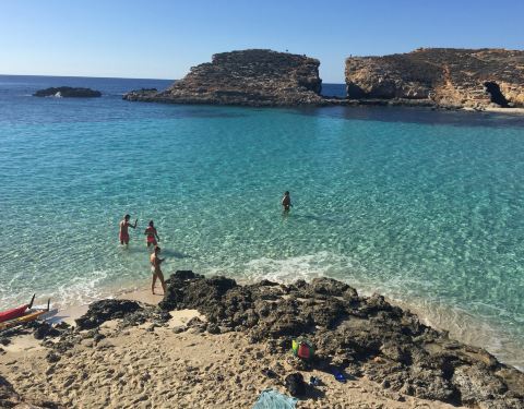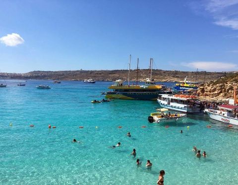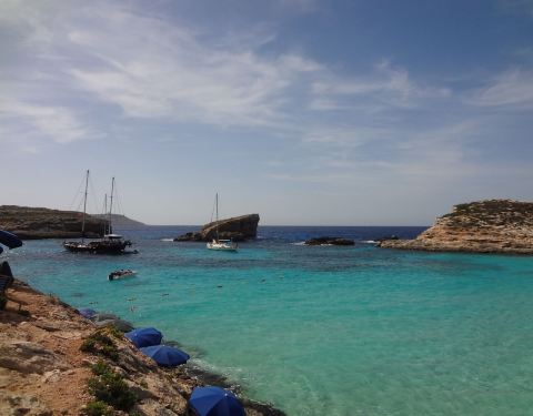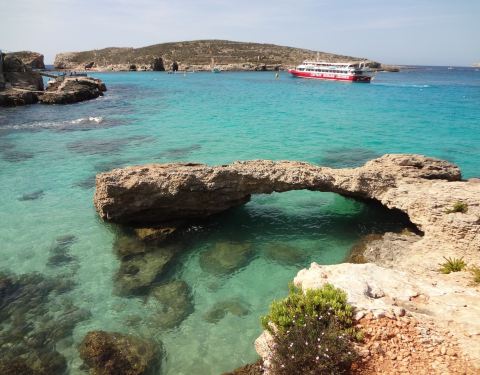 马耳他著名的蓝湖景区,在马耳他科米诺岛附件,可以坐小船到那边,来回15欧元,这边的海水非常漂亮,清澈见底,还有一片沙滩,可以游玩和游泳,旺季时候游泳人很多,平时人不多,据当地人介绍,岛上常住人口就3人,时间充裕的情况下可以在岛上露营两天,非常棒的!还有可能碰上岛上的珍奇动植物。