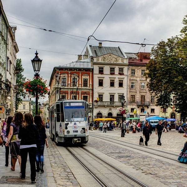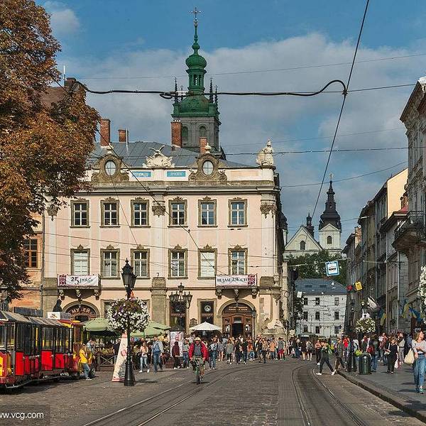 集市广场位于利沃夫老城中心,周围有很多历史悠久的精美建筑,有轨电车也是这里的一景!
