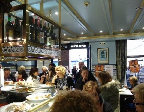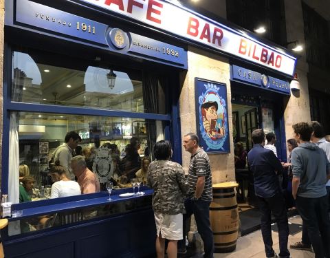 新广场到了Tapas时间就人山人海,一片喧嚣,所有的店连门外都站满了人,热闹到不行,如果想要加入吃的队伍,估计要么赶早要么削尖头挤