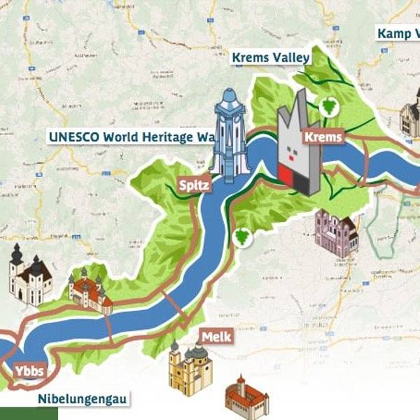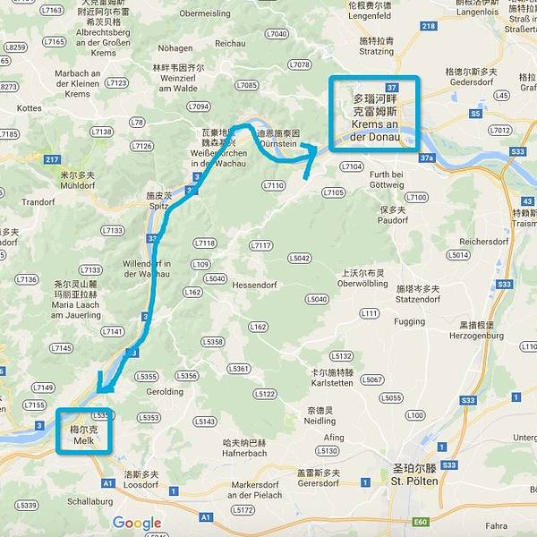 一大早从维也纳出发,开始小镇之旅,全天行进了100公里左右。 瓦豪河谷到底说的是哪儿?瓦豪河谷(Wachau)其实就是两个非常有名的小镇——克雷姆斯与梅尔克之间的一段河谷,它同时也是多瑙河的一段,没有多长,也就30多公里。为啥这么有名呢? 原因1:两个古镇之间,据说是多瑙河下奥地利州段风景最美的一段(虽然我觉得明明是黄色多瑙河而非蓝色多瑙河) 原因2:历史遗迹多 原因3:葡萄酒产区,种植园多第一次来奥地利,我还是没有做好功课,如果只是坐船在这段河道上走一走的话,实在是没什么意思的。下面这张图我觉得可以给想仔细把瓦豪地区玩透的人作为参考。比如从克雷姆斯坐船向下去梅尔克是一种选择,也可以在克雷姆斯住上几万,周围的山谷都去转转,然后从克雷姆斯的码头坐船一小段,到Spitz,然后自驾去梅尔克也未尝不可。为什么对瓦豪河本身不感兴趣呢,因为实在觉得风景有些一般,比起两岸边那些五彩的小镇,我还是更偏向后者。 有图为证 真的是黄色多瑙河……而小镇风光是这样的即使天气再不好,也不能影响自拍的心情啊对不对~