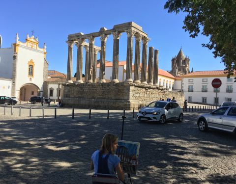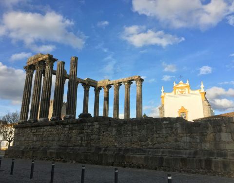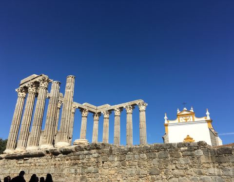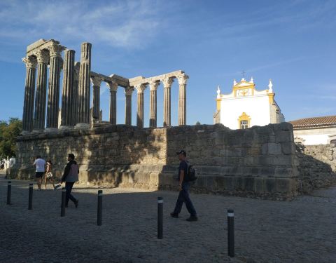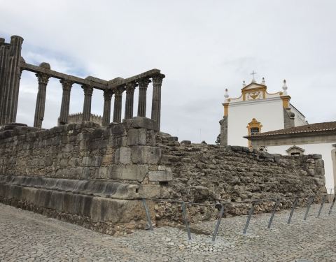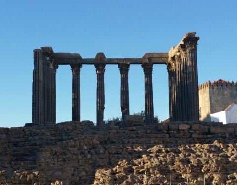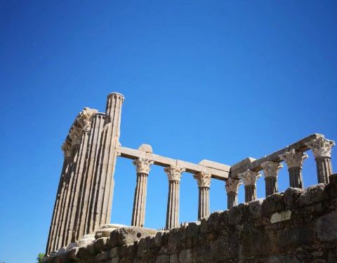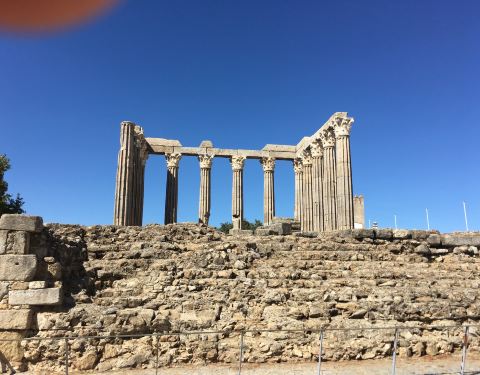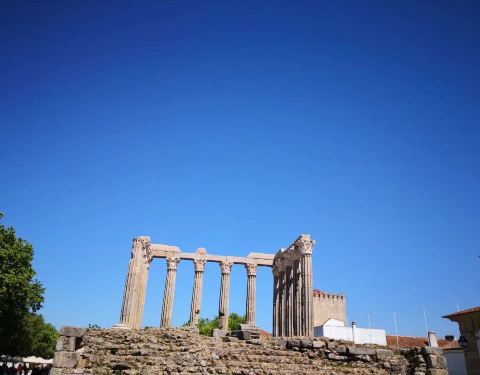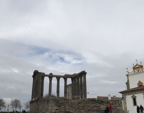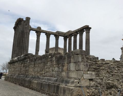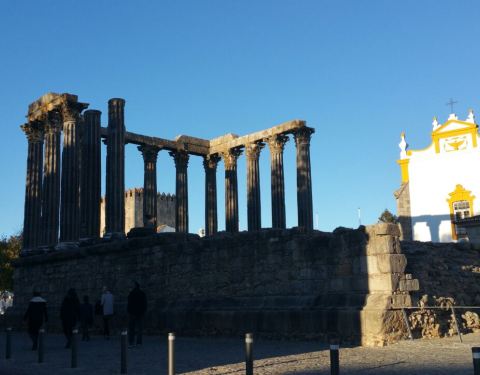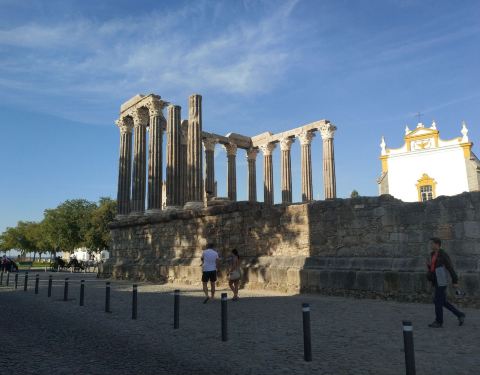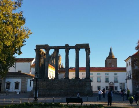 黛安娜神庙____伊比利亚半岛保存最好的罗马神庙。参观完人骨教堂之后,出来正对着这座神庙,只见她已残破不全,仅剩的一半的根柱子依然挺立着,显示着当年的风采。这是古罗马时期用于祭拜月亮的神庙,是葡萄牙境内最重要的古罗马遗迹。