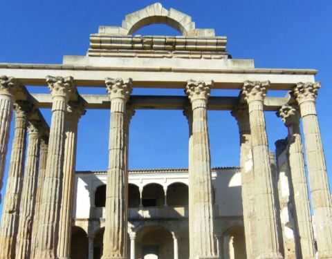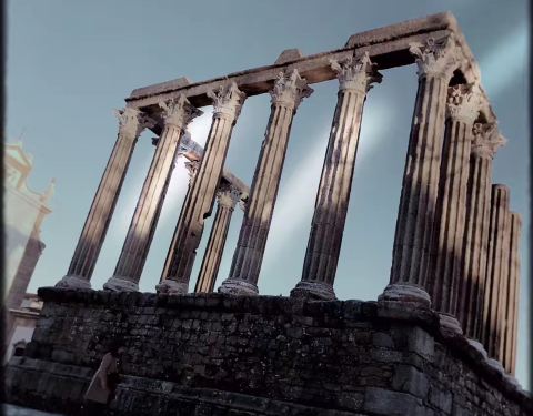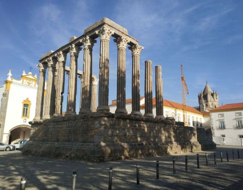 黛安娜神庙____伊比利亚半岛保存最好的罗马神庙。参观完人骨教堂之后,出来正对着这座神庙,只见她已残破不全,仅剩的一半的根柱子依然挺立着,显示着当年的风采。这是古罗马时期用于祭拜月亮的神庙,是葡萄牙境...