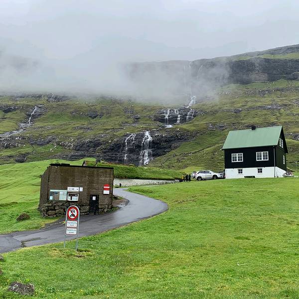 法罗群岛最后一个通公路的村子,有壮观的海上瀑布。