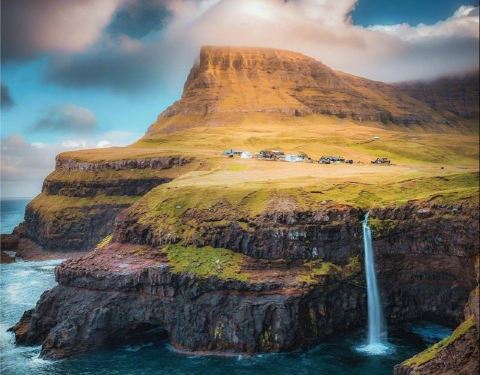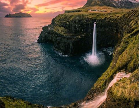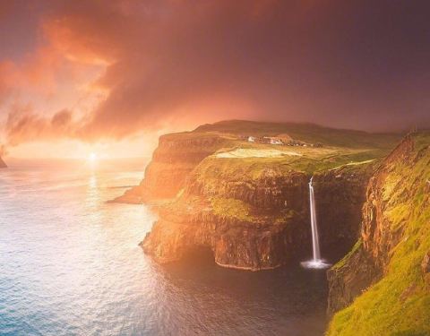 Gasadalur是法罗群岛最后一个通公路的村子,位于北大西洋的悬崖之上,村内的小溪直接落入大西洋,成为令人难忘的瀑布奇景。