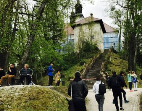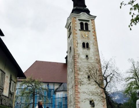 布莱德岛 位于布莱德湖中 是斯洛文尼亚唯一的天然島嶼 岛上风景秀丽 上面的圣母升天大教堂 有99级台阶 高达52米的塔楼 宏偉壯觀 為環保之故 登島只能搭乘人力擺渡船 下船後 先登上教堂塔樓遠眺 繞道行一圈後 再乘原船回岸邊 湖光山色 盡入眼簾 如仙境一般~