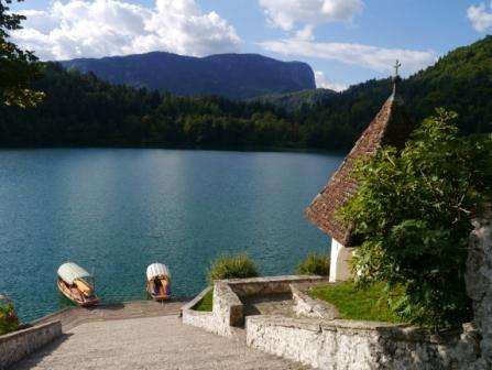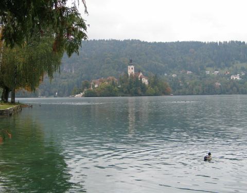 布莱德湖的湖中岛屿,绿树成荫,岛不大,有码头,小船可以停靠。登岛可浏览教堂,纪念品店铺等,还有留言簿可以抒发情感。湖边有的宾馆向住客出借小船,也有租船点为游客提供租车服务。