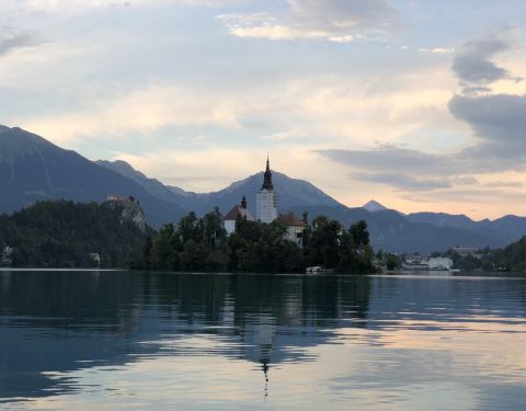 布莱德岛是布莱德湖中的湖心小岛,远看宛如仙境一般,它四面环水,岛上树木郁郁葱葱,一座白色尖塔的圣母升天教堂屹立其中,湖面四周都是高大的山脉,真的美到无法言语。个人觉得这里绝对能够入选欧洲十大美景。