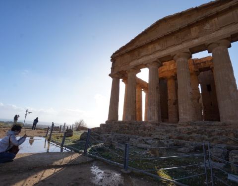 La Valle dei Templi (神庙谷)是联合国教科文组织世界遗产之一。 在山脊上保留了许多希腊式神庙建筑,始建于公元前五世纪,两千年来一直屹立在这片土地上,也是意大利最著名的古希腊建筑群之一,他们俯撖着碧蓝的大海,远望着无边界的苍穹。其中协和神殿是目前为止唯一保存较为完整的神庙,宙斯神庙虽已成废墟,但是庞大的残骸还是能让人想象到曾经的辉煌。