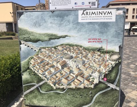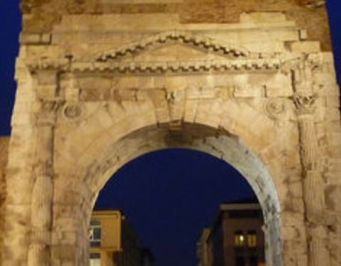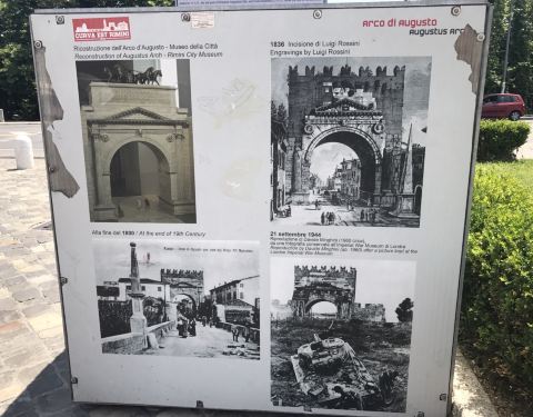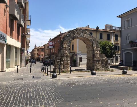 奥古斯拱门,位于里米尼市区弗拉米尼亚大道上,是当地重要的交通要到,古罗马时期在此建造拱门用来防御敌人,拱门保存的很好,拱门上可以看到当年古罗马人的高超建筑工艺