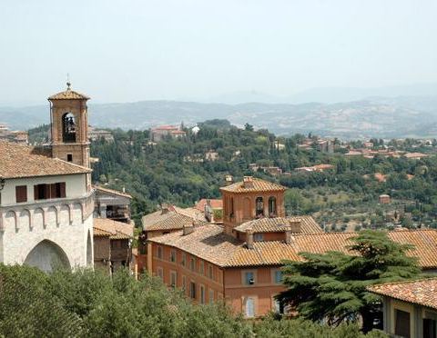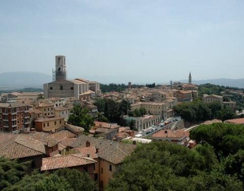 位于佩鲁贾山城的最高处,沿着大街一直往上走就是了,那里有饭店有酒吧,还可以俯视全城景色。