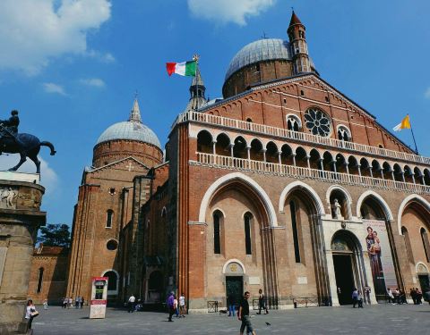 圣安东尼大教堂,位于帕多瓦市区桑托广场上,哥特式风格建筑,是帕多瓦标志性景点,教堂前后各有一个大圆顶,入口处是一个拱门。教堂内部有个罗马回廊的中庭。