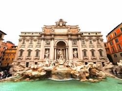 喷泉位于西班牙广场南方,因为喷泉前面有三条道路向外延伸而得名(Trevi是三岔路的意思),以罗马神话中海神尼普勒战胜归来为题材,整体高约25.9米,宽约19.8米,是全球最大的巴洛克式喷泉,也是罗马最后一件巴洛克风格的建筑雕塑作品。