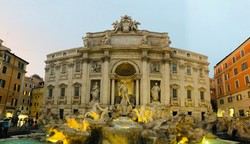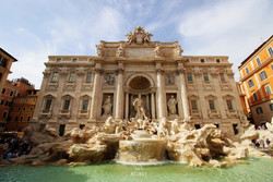 特雷维喷泉(Fontana di Trevi)是“喷泉之城”罗马3000多座喷泉中最为知名的一座,喷泉位于西班牙广场南方,因为喷泉前面有三条道路向外延伸而得名(Trevi是三岔路的意思),以罗马神话中海神尼普勒战胜归来为题材,整体高约25.9米,宽约19.8米,是全球最大的巴洛克式喷泉,也是罗马最后一件巴洛克风格的建筑雕塑作品。