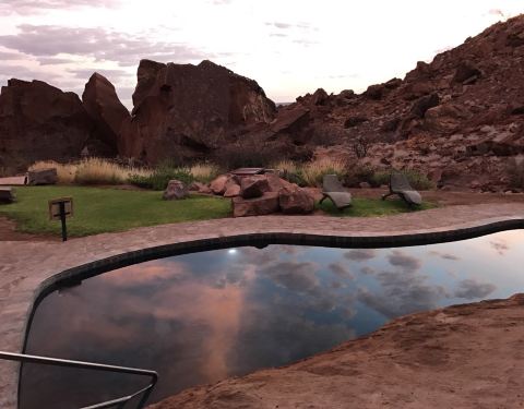 Twyfelfontein在 南非 荷兰 语中是多变的泉水,这里位于 纳米比亚 的 西北 部,这里也被称为达马拉兰德Damaraland,这里6000年前就有人类据说,主要保存有2000到2500年前布须曼人创作的岩画,2007年联合国教科文组织将这里列入世界遗产名录。住宿