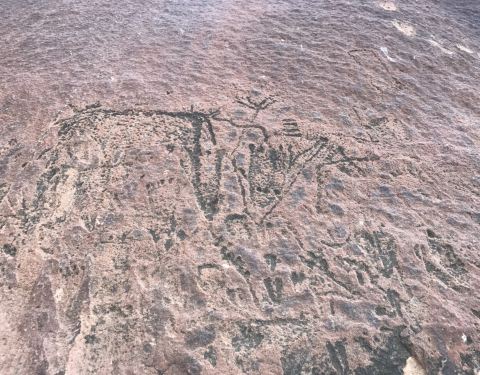 颓废方丹是一处远古时期的壁画遗迹,在红色的沙岩上保存着至今有3000多年历史的岩画,大多是描绘当时远古先民们狩猎或者是举办仪式祭祀的场景,让人一看便有一种穿越回3000多年前的感觉。