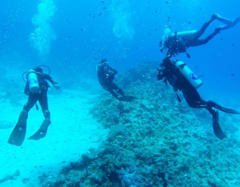 西奈的蓝洞是全球最有名也是最危险的潜点之一。(图三为蓝洞岸边为遇难的潜水员立的墓碑群) 这次学aow潜证,很重要的一个原因就是为了穿越蓝洞26米深处的迷你拱桥(ow潜证由于只能下潜到18米故无法参与),具体...
