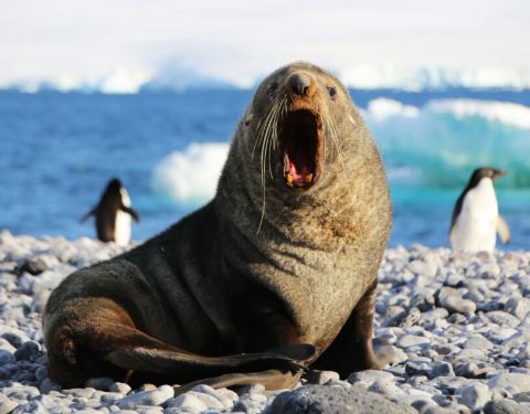 海狮 企鹅岛除了企鹅还有不少海狮,这只海狮很是威猛,对所有敢于靠近它领地的人都大声警告海狮 企鹅岛除了企鹅还有不少海狮,这只海狮很是威猛,对所有敢于靠近它领地的人都大声警告。或许,只有人这么大体型的动物才能对它有所威胁吧。