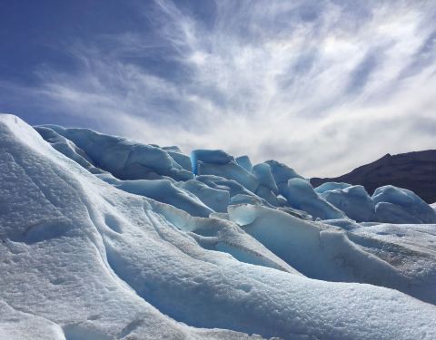 乌普萨拉冰川是世界上第二大冰川,游览阿根廷湖时,就能看到它的一角。冰川的面积超级的大,大约有四个布宜诺斯艾利斯那么大,在阿根廷湖靠近冰川的湖面上,漂着各种形状的浮冰,体积巨大,颜色非常的蓝,阳光下闪闪发亮,非常的奇幻。