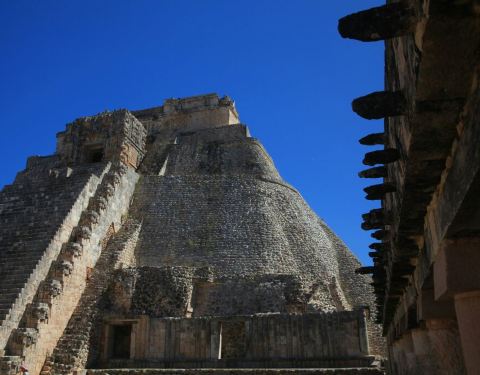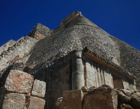 ...是整个乌斯马尔古城中最高的建筑,它有别于玛雅文明中其他的金字塔,因为它是椭圆形的,造型非常独特