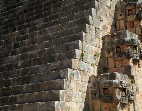 术士之屋是乌斯马尔古城中最高的建筑,由于他椭圆形的轮廓,又被称为椭圆形的金字塔。是玛雅人用来占卜和祭祀雨神的神庙。上去的楼梯十分的陡峭,几乎成90度直角,要想上去还真的要有些胆量才行。