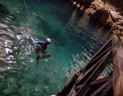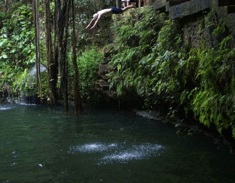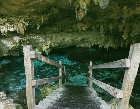 这座灰岩坑是图卢姆规模最大的火山溶洞水坑,这里是深坑潜水爱好者的天堂。专门的步道可以下到洞底,这里的水冬暖夏凉,游起来非常的舒服,头上还有涓涓细流的小瀑布,这种游泳的感觉真的很奇异,令人终身难忘。