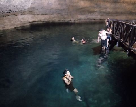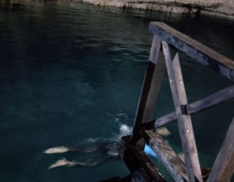 在墨西哥旅行,在灰岩坑/天然井(cenote,地下石灰岩洞穴所形成的水洞)这种奇特的自然景观游泳或者潜水似乎是一项必备行程了。尤卡坦地区遍布各种各样的cenote。因为没有救生员,所以水性不好的话想游泳最好是租救生衣,灰岩坑入口处一般都有,一般20比索或者1美元,包括租寄存物品的小置物柜。