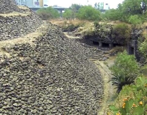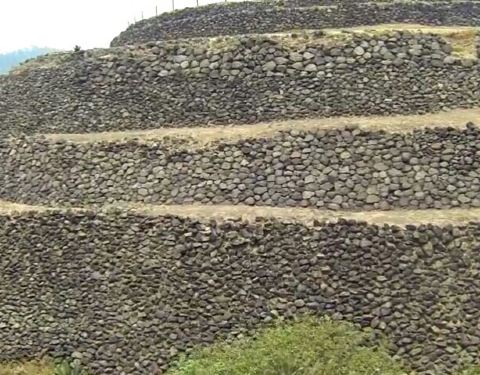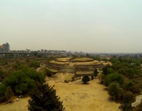 奎库尔科金字塔位于墨西哥城南部,是美洲较古老的金字塔,金字塔是1922年从8米厚的火山熔岩下发掘出来的,高20米,底层直径135米,上层直径70米,塔身是由4个不同的圆锥横截体相互叠成,十分壮观。 奎库尔科金字塔较为突出的特点:台阶的层次棱角分明,以直线轮廓表达,挺拔而清晰,各个部位都像用界尺画成一样。塔的四面台阶通向台庙,各有91级各阶,所有的台阶加上顶层正好是玛雅人一年的365天,台阶的两侧宽达1米的边墙,北边墙下端,有一个带羽行的大蛇头石刻,蛇头高1.43米,长约1.80米,宽1.07米,蛇嘴里吐出一条大舌头,颇为独特,在每年春分,秋分这两面三刀天的下午,金字塔附近就会出现蛇影奇观:在太阳开始西下的时侯,北边墙受到阳光照射的部分,从上到下由笔直逐渐变成波浪形,直到蛇头,宛如一条巨蟒从塔顶向下爬行,由于阳光照射的关系,蛇身有7个等腰三角形排列成行,正好像蟒背的花纹,随着太阳西落,蛇影渐渐消失。