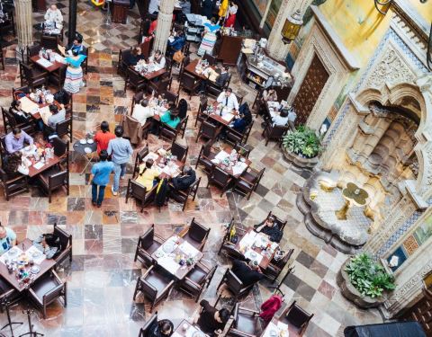 这是墨西哥城一座非常有名的建筑,又被称为瓷砖之家,同时也是一个提供传统墨西哥餐时的高级餐厅。这里的二层区域免费向公众开放,墙上褪了色的古典主义装饰壁画和墙边流光溢彩的喷水池,让餐厅内的时空仿佛滞留...