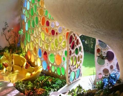 五彩缤纷的螺旋房子,充满艺术的装饰,以五颜六色的砖块建设的房子里设备齐全。