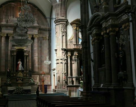 大天使圣米格尔大教堂规模虽然并不很大,但是粉粉的颜色,好似结婚蛋糕,非常独特,而我们去的当天,刚好有新人在此举办婚礼。据说是按照比利时的教堂设计的。