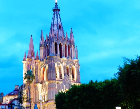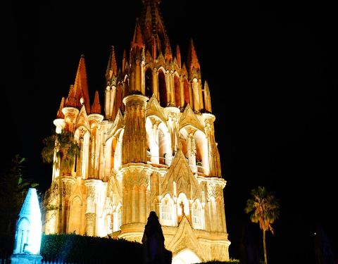 大天使圣米格尔教堂是圣米格尔德阿连德古城中最为雄伟的一座教堂。 教堂的主体建筑非常的高大,内部空间也巨大且豪华,夜晚还会亮起璀璨的灯光,非常的绚烂,绝对是这里最值得来的教堂之一,不可以错过。