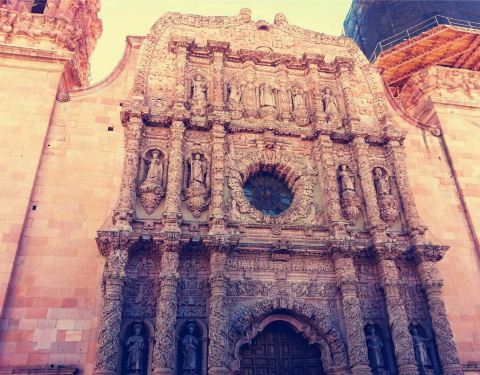 萨卡特卡斯大教堂是一座典型的巴洛克风格的教堂。教堂大门的墙壁上刻满了非常精致的神像,花纹也十分的复杂。教堂内寂静安详,悠扬的管风琴音乐荡漾在教堂里,使人心情舒畅而平静,绝对值得来聆听一下。