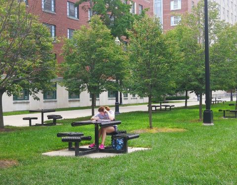 俄亥俄州立大学大概有小半个城市,太大了,太阳底下走了一个半小时,还有新校区没去,校园里有公交车,最牛的是底体育场,不过正好不能进去看看。各个学院都很赞。