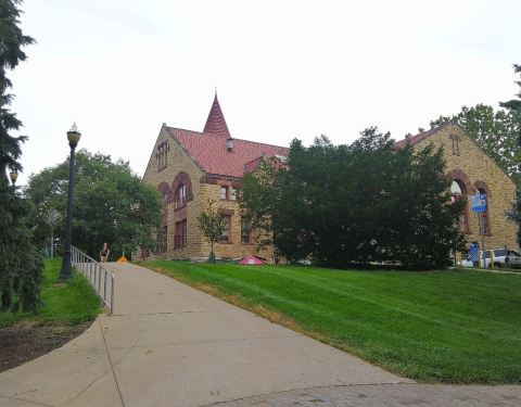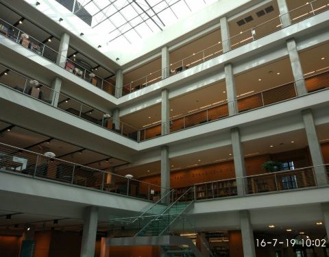 ...个很有年代的学校了,这所大学的图书馆是一个很古老的建筑,几十年的历史,大学有很多不同肤色的学生