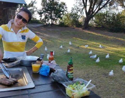 这片海滩在棕榈湾的最北面,自驾车来的时候,找到海滩边的一个免费的自助烧烤炉子,于是我们就在这里做午饭吃啦!就是太阳晒的太厉害啦!