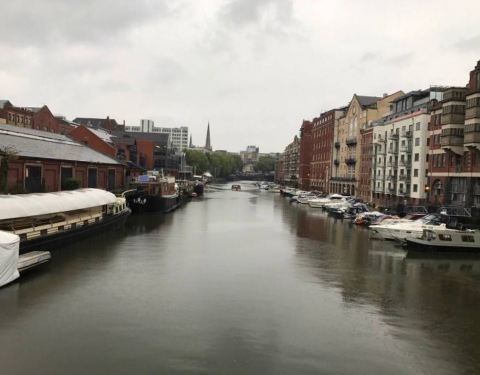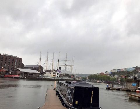 路上就开始下雨,天阴沉沉的。酒店就在圣玛丽教堂附近。放下东西跑出来逛着找吃的。Bristol的规划毫无道理可言,路是不规则的歪七八扭,广场旁边不协调的位置放个大球,公共钢琴还有个人在“梆梆梆”不成调地狠命按。到码头就走不动了,就近找了家餐馆。分量太大,嗝儿~