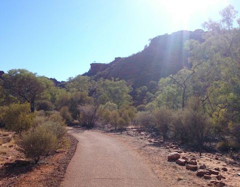 自驾从乌鲁鲁开车过去三个小时,但是景色非常的壮观,比卡塔丘塔的风之谷景色漂亮多了,虽然都要爬山约3.5小时,7公里的路程,强烈推荐自驾游,但一定要赶早出发,因为太阳出来以后温度会快速上升,建议12点之前下山,多喝水注意防蝇。