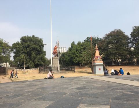 昨天经过漫长的旅行,往返各两小时从浦那Baramati乡村回到酒店,路经一片古堡,问司机才知是Shaniwar宫。翌日,热心的酒店服务员得知我要游览此古堡,详细解说游览路线,离酒店仅两公里,我决定步行前往。7点半出发,清晨的浦那已略有热意,经过一个博物馆,想进去看看,守门人说9点才开放,继续前行至一河边,看见衣衫褴褛之人,老老小小在河岸,或卧或坐。问一老者路,老者反问我从何来,告知,原来他之前在深圳待了6个月,后随其女回印度。来到Shanivar,首先映入眼帘的是宫旁耸立的一棵树,硕大无比,目视树根足供两到三名大汉合抱。等到9点,宫门打开,外国人买票需要200卢比,本地人象征性收几卢比。