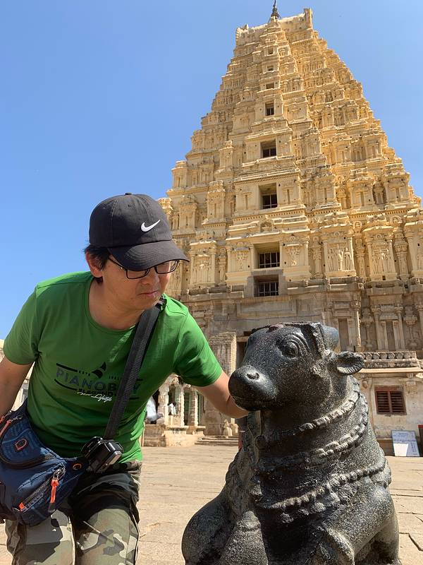 今天就准备自己瞎逛了,先去了离我们最近的维鲁巴克沙神庙。这座庙需要寄存鞋子。塔门后面有两个萌萌的南迪(印度的神牛)石雕。再往里走,门口有人要收50卢比一个人的门票钱。其实我也只是想看看庙里的大象而已...