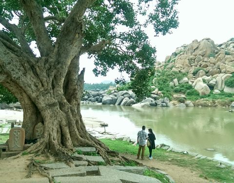 hampi的历史可以追溯很久远,神奇的是在这样一片石头山地所存在的胜利王朝,建设了如此规模的都城,满目都是石头古迹:庙宇,殿堂,广场,道路,市场,城垣,,,非常值得细细品味。石头战车,巨型神牛,象舍,莲...