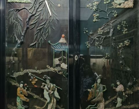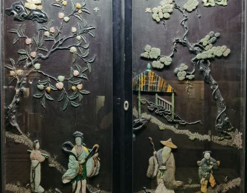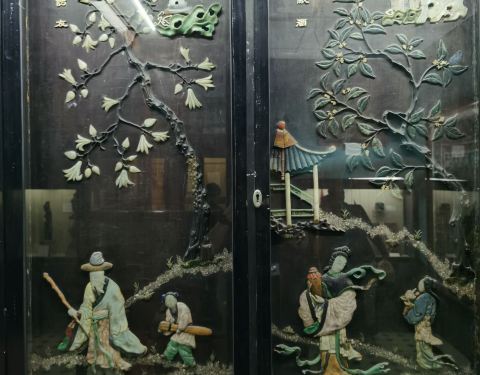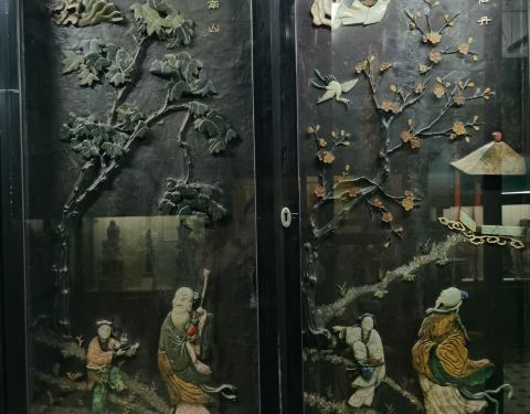 一楼的文物都不错,二楼的自然博物馆就太一般了,一楼进去的八个中国屏风,让我深深的看了一个小时,然后又去买了一个拍照许可证,花了100卢比,拍下这些我们的国宝!全部是由和田玉,翡翠,绿松石,玛瑙等拼成的,太精美了!这些宝贝存放在巴罗达博物馆,感觉好难受,希望有朝一日能尽快回国!(顺便说下,印度人参观博物馆是10卢比,等于人民币1块钱;我们外国人参观是200卢比,等于人民币20块钱。等于翻了20倍!)