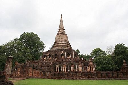 没有门票,也没有人看着,随便进去。看起来比较壮观,佛塔下方是一圈大象雕塑。据说是以前的一个大臣修建的位置在素可泰老城的东边,需要骑自行车去。没有门票,也没有人看着,随便进去。看起来比较壮观,佛塔下方是一圈大象雕塑。据说是以前的一个大臣修建的。