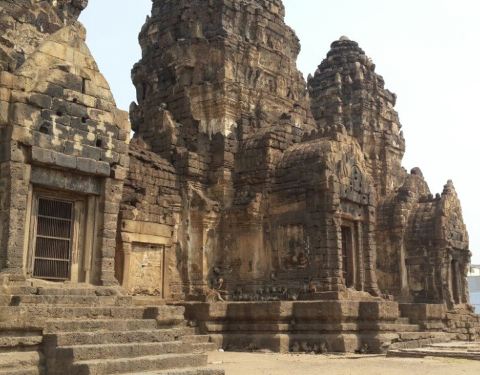 寺庙最早是印度教寺庙,由基座相连的三座耸立的高棉风格的佛塔组成,代表了保护神毗湿奴、创造之神梵天、和毁灭之神湿婆三位一体的意思。