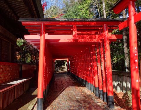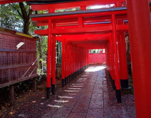 三光稻荷神社位于犬山市犬山城下,和针钢神社相邻,神社有名的是那一排排的鸟居,通体红色,穿过鸟居,也可以到达犬山城。秋天风景如画,满地金黄的银杏树叶。