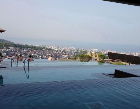 温泉安静舒服,早上可边泡边看日出,超赞!度假区内还有电玩场,音乐喷泉,泳池,可以多住两天哦从别府站有酒店专车送到,在官网上订的和洋式房,人均9500日元,包含温泉和早晚自助餐。自助餐质素高!温泉安静舒服,早上可边泡边看日出,超赞!度假区内还有电玩场,音乐喷泉,泳池,可以多住两天哦!