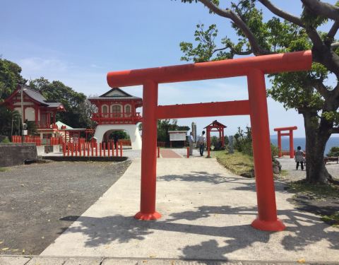 龍宮神社,皆被 日本 人称为「结良缘胜地」,因浦岛太郎和海龟而有名,海龟会定期在海岸一带产卵从砂浴馆坐观光巴士到長崎鼻。本打算把池田湖和最南端的车站一起去了,奈何时间很紧凑。最后放弃了它们选择了長崎鼻。
