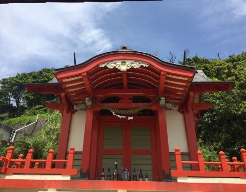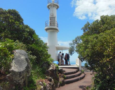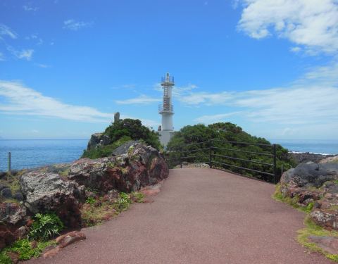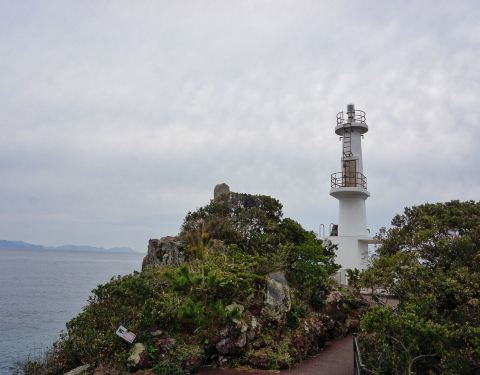 从砂浴馆门口继续坐巴士到鹿儿岛县南部的长崎鼻,它是萨摩半岛最南端的海岬。 在长崎鼻上最醒目的标识就是伫立着的白色灯塔,在三崎的前端还供奉着一座颜色非常醒目的龙宫神社。登上海岬眺望远处的山景,在绝景的开运圣地虔诚的许下祝福的心愿 。